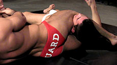 ![]() Calvin's powerful legs are wrapped around Nicholas' neck. |