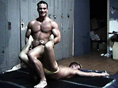 'Bad Boy' Yves Benoit takes on the smaller Danny D' from Mat Attack 4. The action takes place in the PWP locker room. Headlocks, head scissors, bear hugs, boston-crabs are some of the holds 'Bad Boy' uses to get the upper hand on Danny. But Danny keeps coming back with counters of his own.