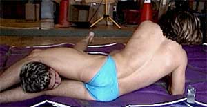 However, STEVE is not finished with ERIC. He secures a head scissors on ERIC's head while still out! STEVE keeps the pressure on until he decides he has had enough!
