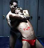 One of the sexiest beatings I've seen. Kid TNT claiming to be a good guy"," low-blows Kid Q to start this one. A taste of things to come for Kid Q. Kid TNT gets the upper hand by dirty tactics throughout this match. A low blows to Kid Q's crotch"," biting"," gouging to the eyes"," lots of punching to the forehead"," leg drops to the crotch"," anything. Any time Kid Q got on one of his power holds"," TNT would pound his way out"," and then throw Kid Q into one of his big pro-holds. Kid Q really gets worked over. TNT locks on his 'Love Machine' and a serious cobra hold to big Kid Q"," to knock him out. Then after TNT lets Kid Q lay there defeated for a while"," he returns to the mat to lay a pounding to the vulnerable Kid Q. With his hard fists he pounds Kid Q every which way"," then he rams his head into the lockers a few times. All that followed by another cobra. Kid Q rarely gets manhandled to this degree and has a very hard time recovering from the beating he takes. TNT is HOT.