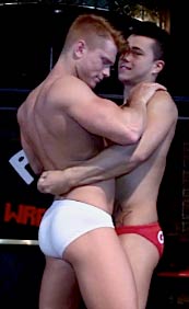 Here are NEO and FRANK locked up at the beginning of the match. NEO is the first to suffer in FRANK's side headlock but a punch to the gut ..