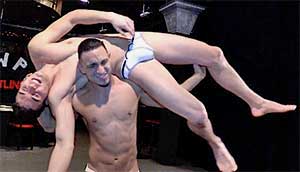 ..then he secures a leg lock on his opponent..but soon gets too cocky and pays for it with a well planted arm to the groin!